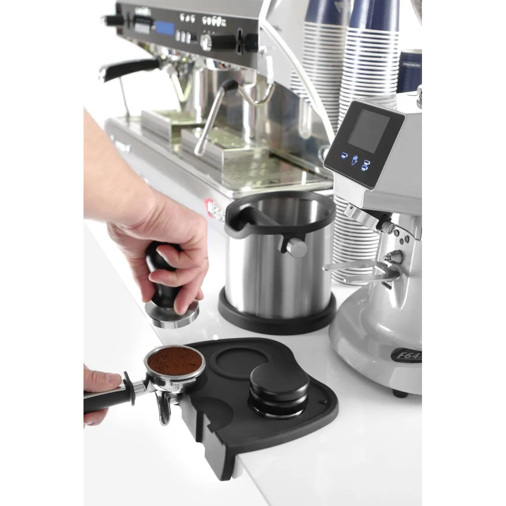 Značka HENDI - 208625 Používá se pro lisování mleté kávy, vhodný pro většinu portafiltrů. Tamper z nerezové oceli s pružinou. Černá hliníková rukojeť.