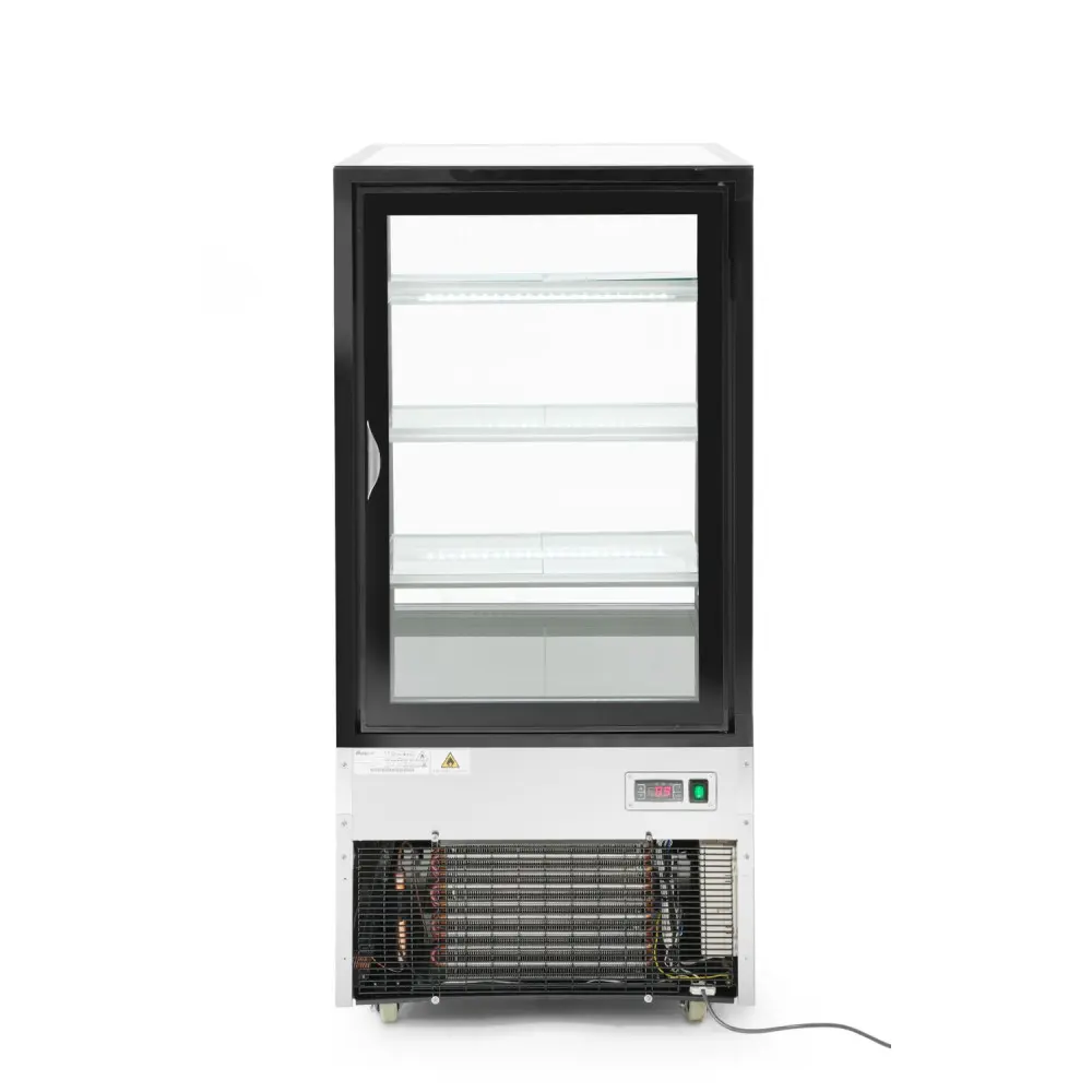 Tato kulatá černá chladnička s vitrínou má objem 100 litrů a je ideální pro chlazení a prezentaci...