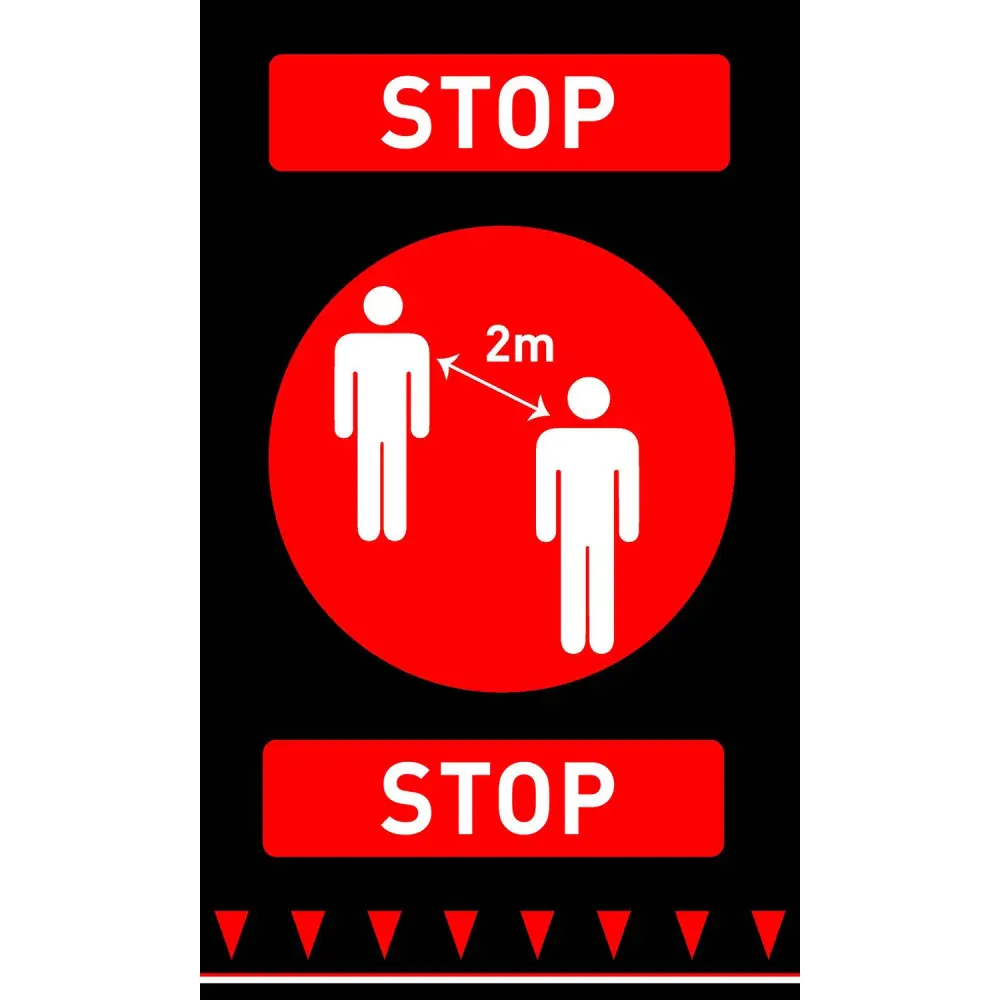 Zabraňuje šíření virů, bakterií a infekcí. Připomíná zákazníkům, aby udržovali 2metrový odstup prostřednictvím informace na podlaze!