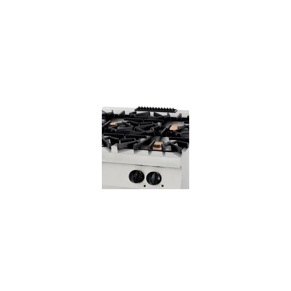 Tato elegantní plynová varná deska je skutečně výkonná a je určena pro rušné kuchyně. Díky výkonu 40 kW a použití robustních materiálů v konstrukci vydrží tento sporák se čtyřmi hořáky každodenní intenzivní používání. Je ideální pro umístění do varné linky a můžete ji také rozšířit objednáním odpovídajícího nerezového podstavce, ať už s dvířky, nebo bez nich.
