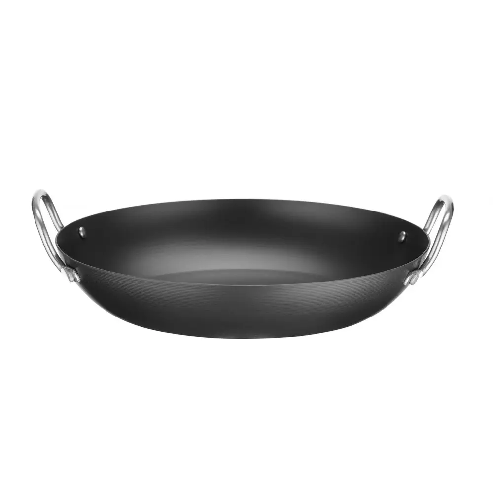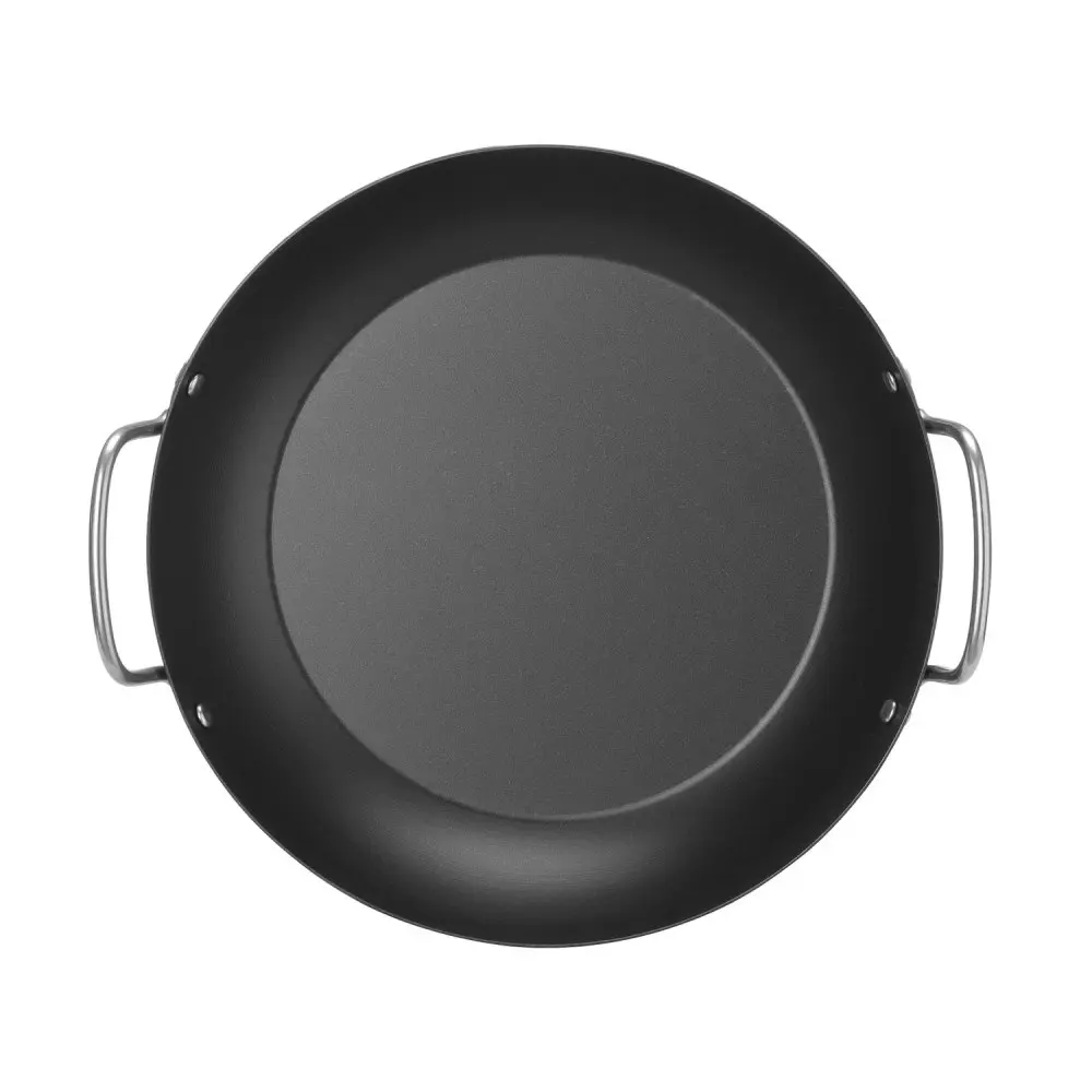 Značka HENDI - 627952 Pánev je vyrobena z uhlíkové oceli. Dvě rukojeti z nerezové oceli. Lze používat v troubě při teplotě do 250 °C.